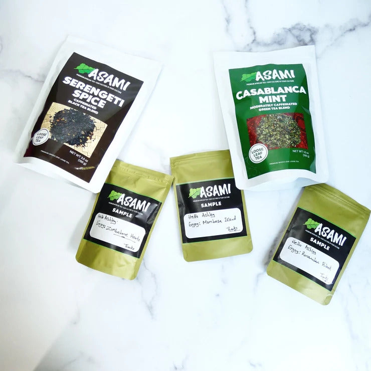 Currently Steeping: African Teas from Asami Asami is an online tea retailer that specializes in African teas. They feature single-origin African teas and tea blends, which include ingredients sourced from Africa. In addition, each tea is named to pay reverence to the continent and African culture. The company has a combination of loose leaf and tea bags. The company graciously asked if I’d like to sample a selection of their teas. I sampled five teas from Asami: Serengeti Spice, Mombasa Island, Casablanca Mint, Zimbabwe Hearts, and Rwandan Black. Please see my tasting notes below.